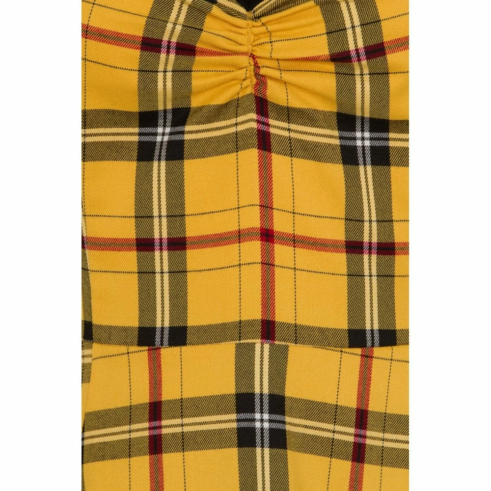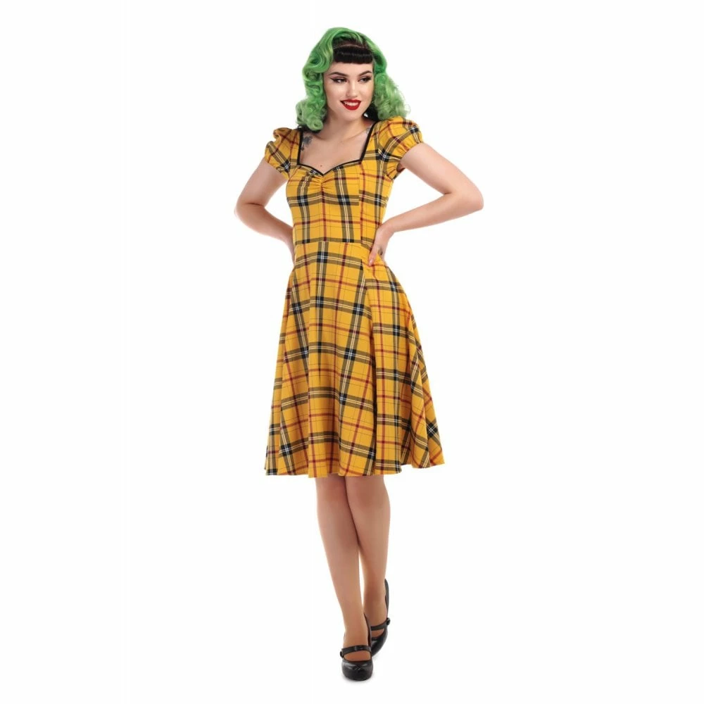 The Mimi Clueless Check Doll Dress is a gorgeous piece that will have you saying “as if!” She has a totally cute sweetheart neckline, finished with black matte binding, complemented by gathering detail at the centre of the bust. Her puff sleeves are completed with an elasticated channel, creating that amazing shape. Her swing skirt is perfect to wear with a fluffy petticoat, but also creates an amazing shape without one, and has handy side seam pockets. Mimi is made in bespoke Clueless Check fabric, a woven plaid in yellow, with large checks of black, red, and white. Match your accessories to any of these amazing colours for a pretty look.