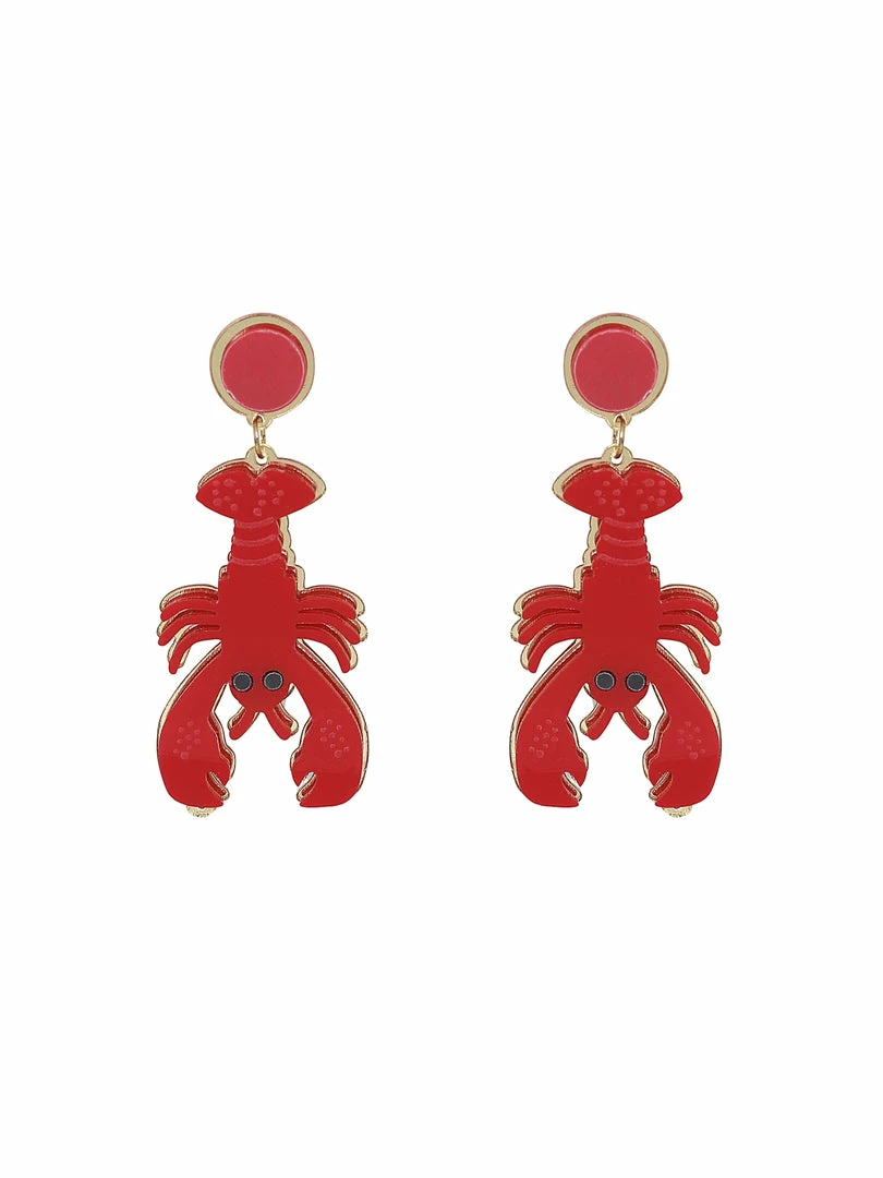 Lobsters are known to pair up for life, so make sure you always keep our Upside Down Lobsters Earrings together! Cast from vibrant red resin, they have a metallic backing and hang from matching circles. Wear yours with kitsch or nautical styles – we think they look great with the Vanity Swing Dress!