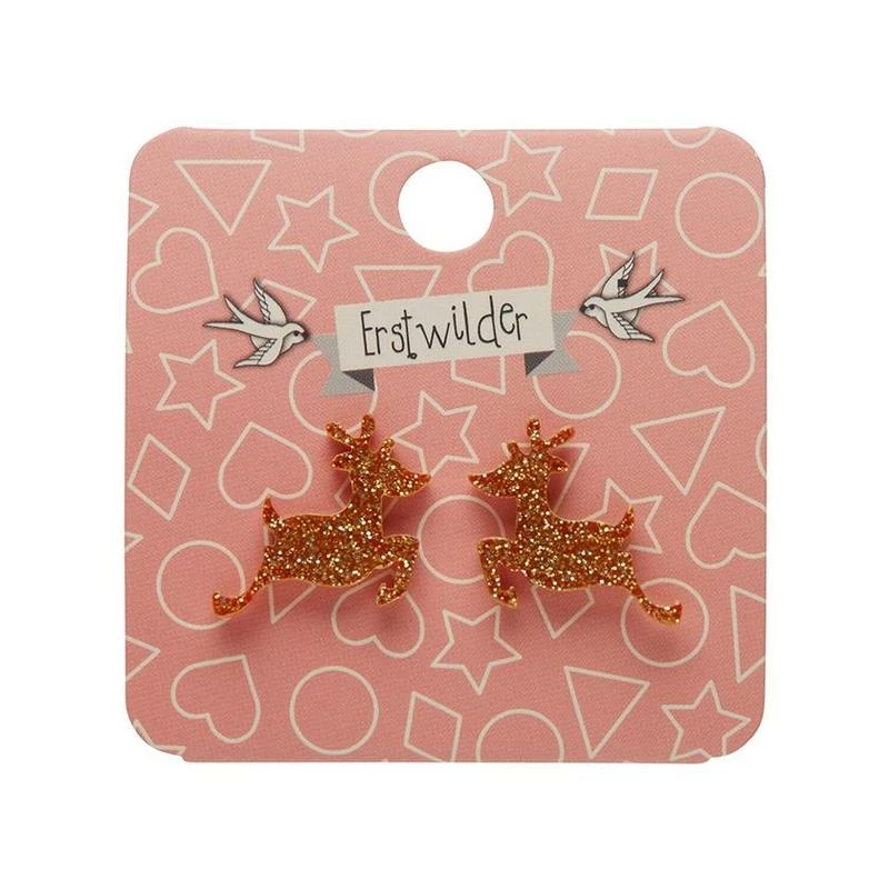 Shout with glee with these Erstwilder Essentials reindeer stud earrings, crafted from glitter gold resin. They make for that perfect pop of colour to compliment your outfit, or to match with your favourite resin or acrylic brooch or necklace.