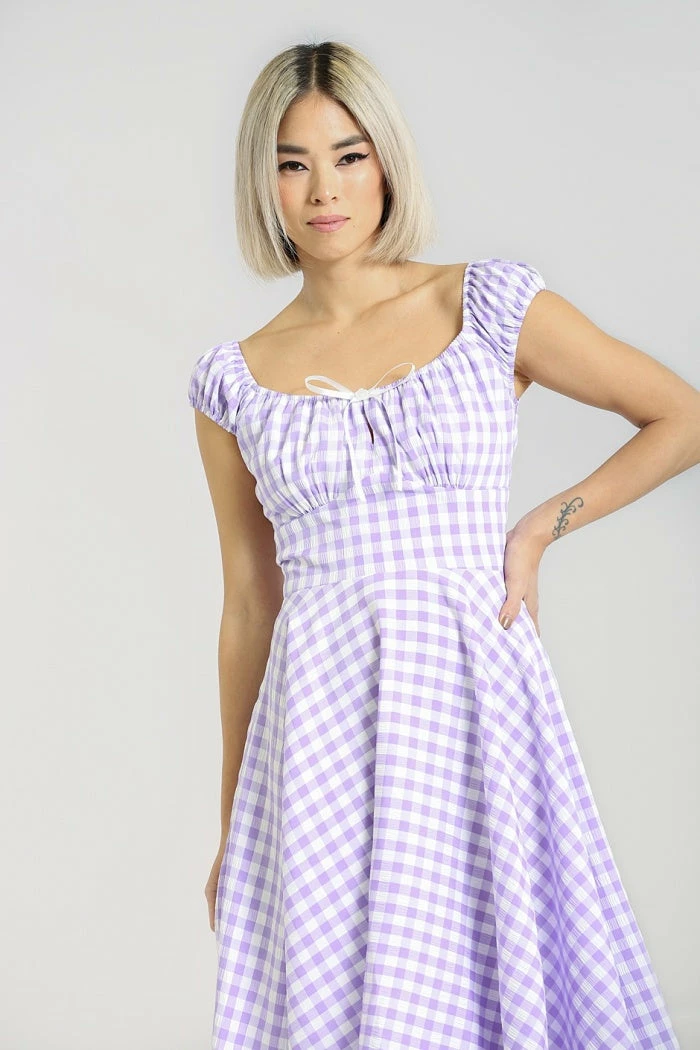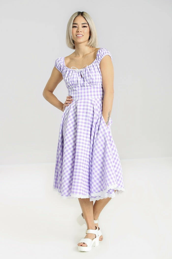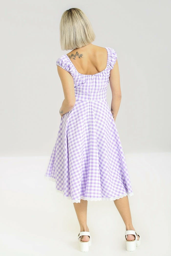 - Fitted bodice with keyhole detail on centre of bust with flower button & bow