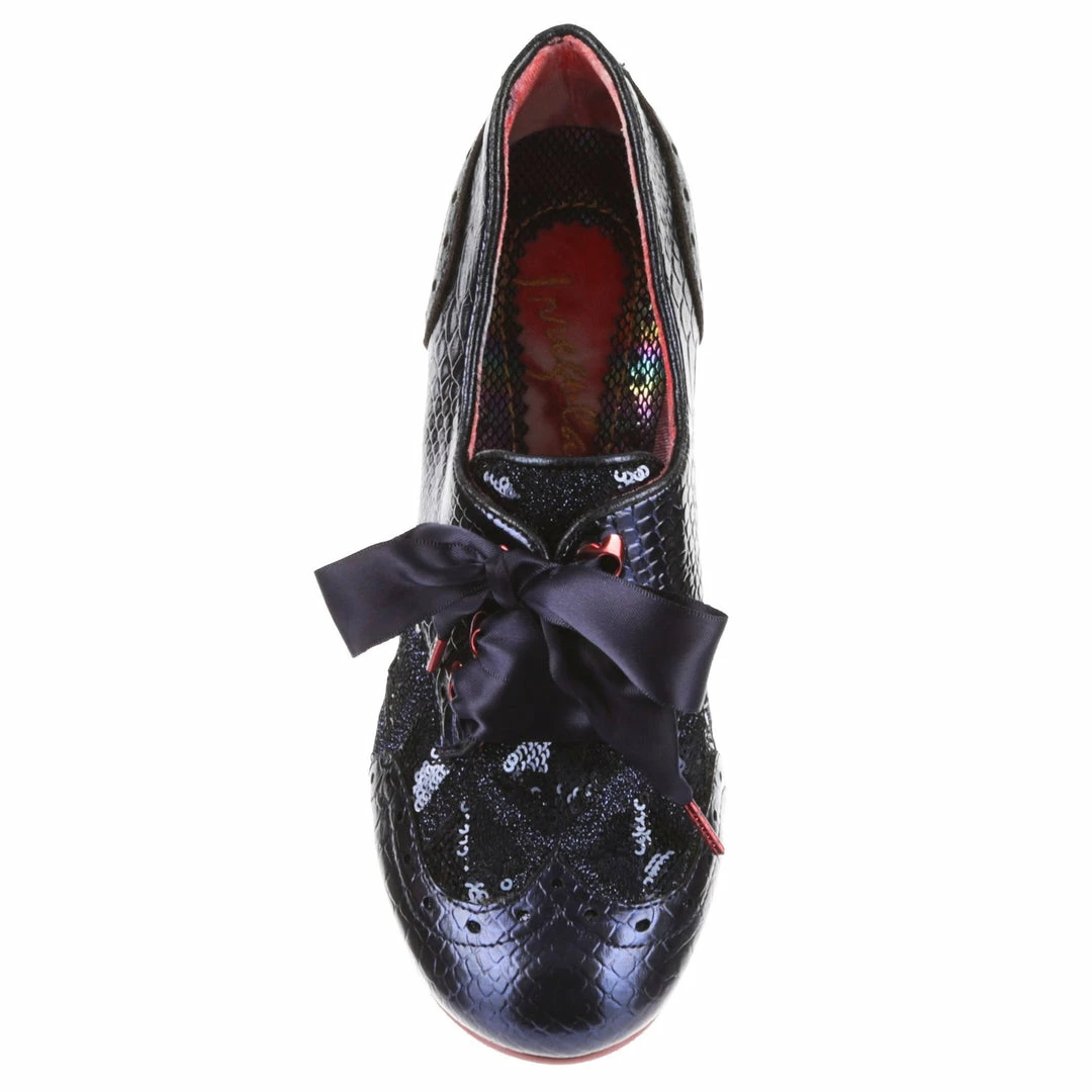Have a Victorian adventure in these stunning lace ups! A low wearable heel is combined with luxurious blue tones of metallic, snake print and sequins. A perfect mix of textures, topped off with a contrasting rose gold edged sole and heel, navy ribbon laces and rose gold eyelets! Perfect to give any preppy look just a little extra boost!