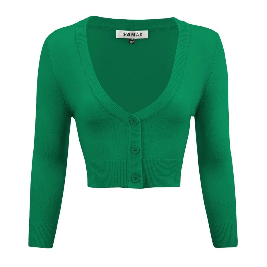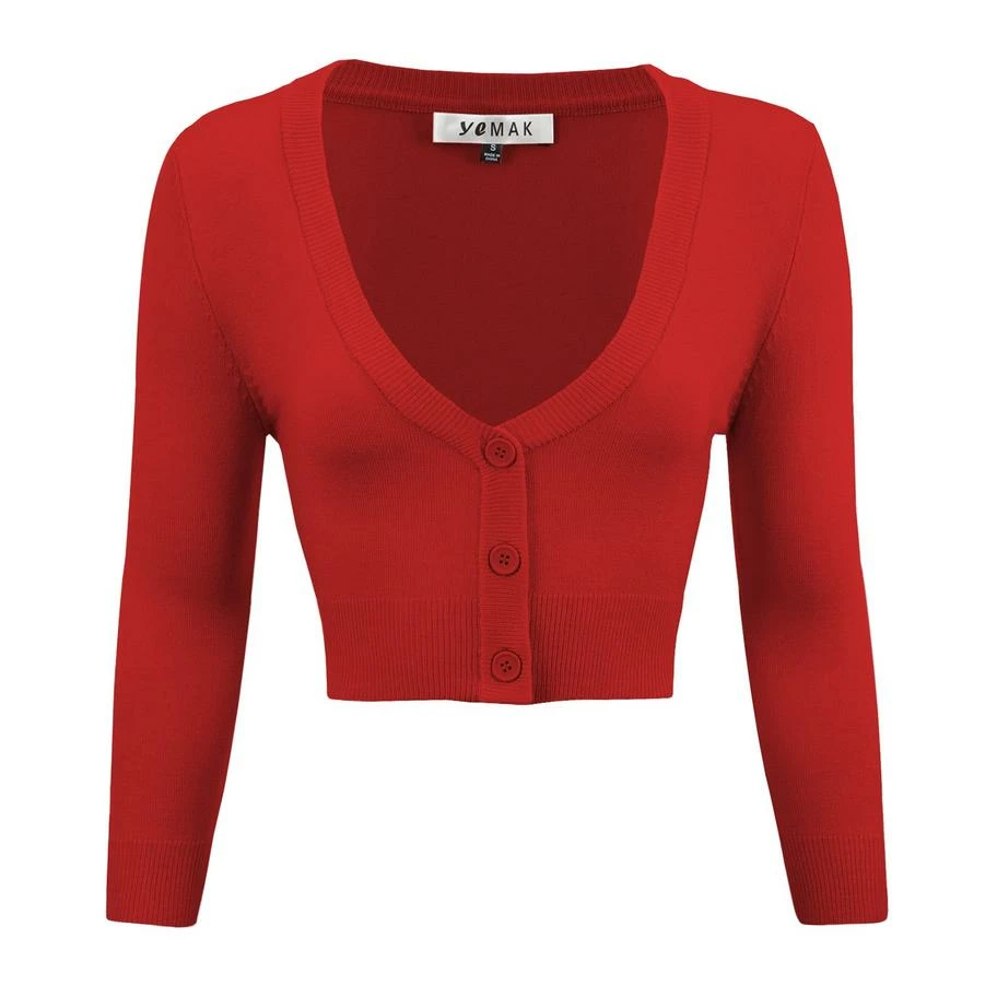 The MAK cardigan is the perfect topper for any pinup look. This cardigan is cropped at the waist to perfectly compliment a full skirt or to spice up your wiggle dress or capris.