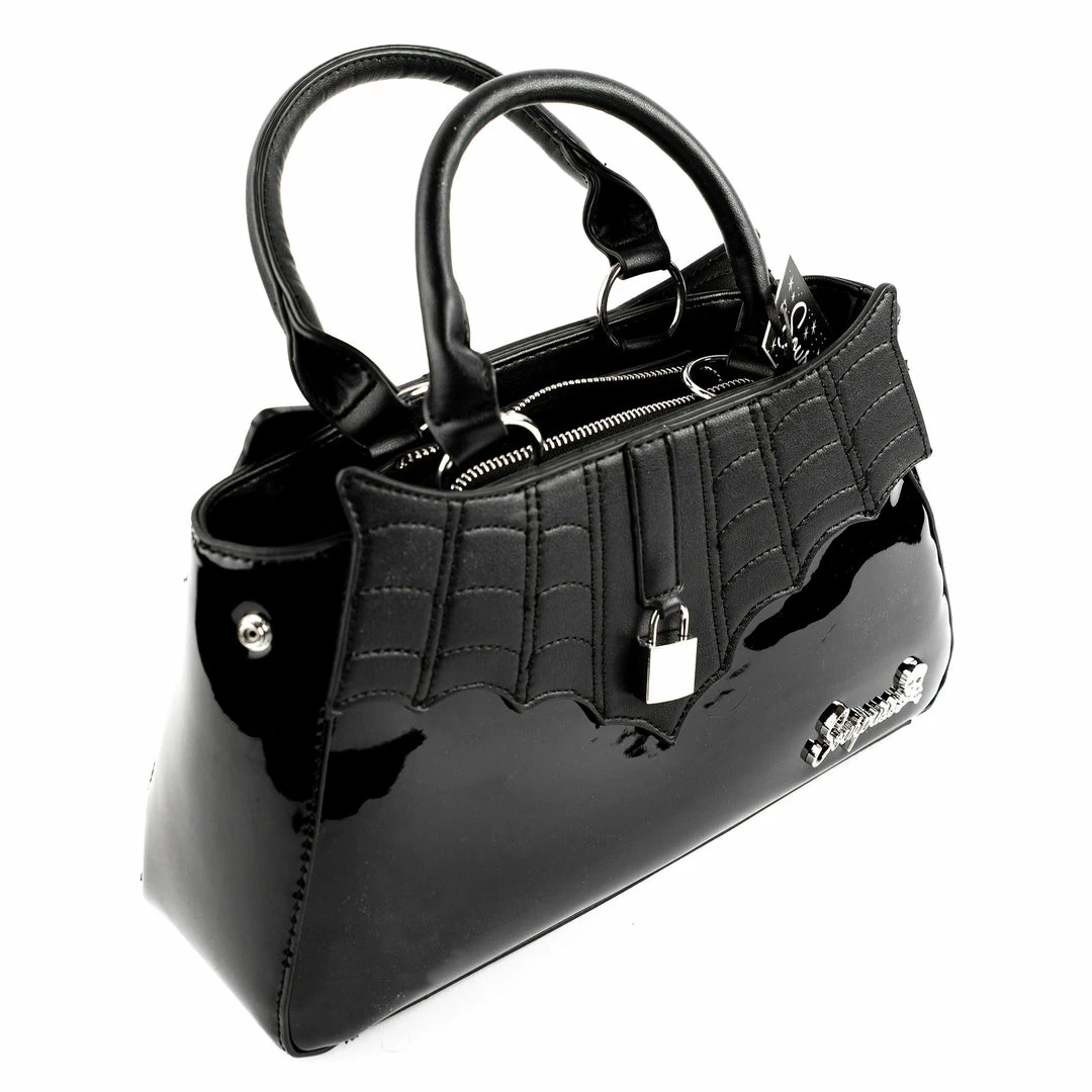 Just like little black dresses, you can never have too many little black purses! The new Black Locked Out Purse is our latest, and we’re in love! The shell is comprised of glossy black faux leather, with matte stitched spiderweb details. It has a zip closure, inner pockets and little metal feet so you never have to worry about it falling over!