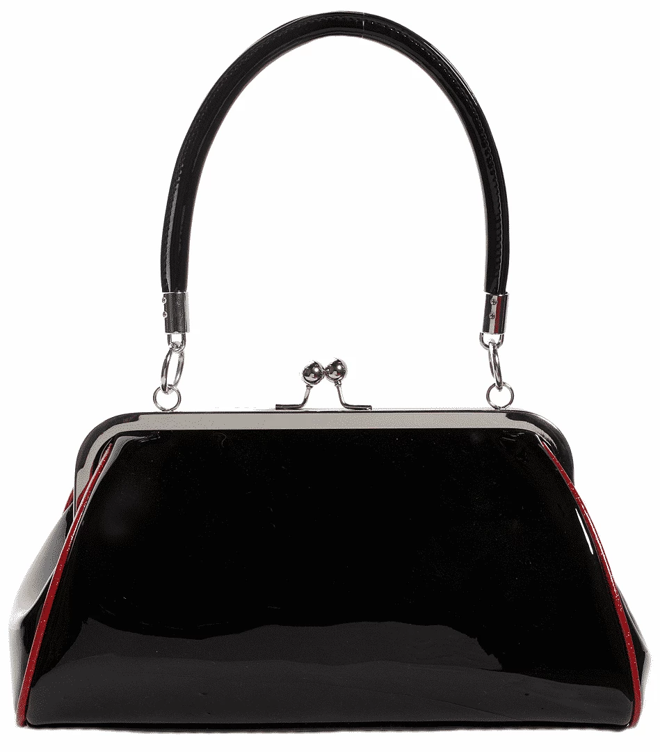 The Webbed Widow Purse has the most gorgeous, red glitter vinyl you ever did see! Complimented by spiderweb embroidery, it’s a must have handbag – day or night, Spring or Fall! A classic Sourpuss handbag, it features a sturdy, vintage shape, satin lining, kiss-lock closure and easy grip handles. Great for toting around at car shows or for a night out on the town!