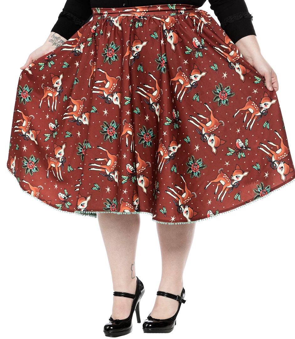 If there’s only one skirt you wear this holiday season, the Deer Me Skirt must be it! Nothing will get you in the festive spirit more than sweet, little deer, especially when they’re paired with birds and holly! This adorable print was created with artwork by Peggy Sue, and we can’t get enough! The skirt has gathers at the waistband, a super wide sweep and a back zipper and … IT HAS POCKETS!!