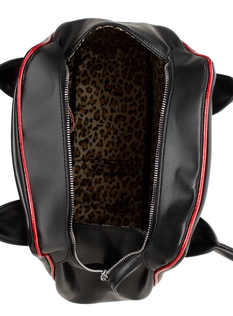 Add some extra heat to any outfit with our Up in Flames Rumbler Purse! This generously sized purse has a vintage doctor’s bag inspired shape, and is made of a lux black faux leather complete with red glitter vinyl flames and piping accents. In addition to comfortable shoulder straps, there’s also a fun leopard print satin interior with pockets and plenty of space to hold all your must haves!