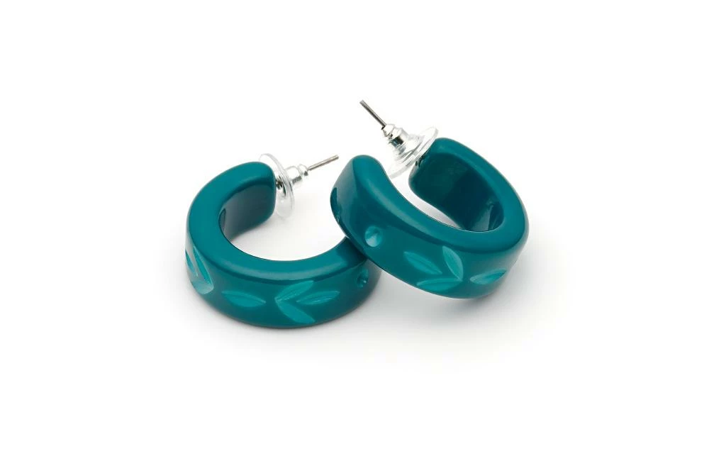 We love a bluey green! The Dragonfly Carved Hoop Earrings are no exception! Look no further if you want to add a touch of the tropics to your vintage inspired outfit. We love them with greens, we love them with pinks, and we especially love them with their Duotone partner, Nymph. Whether you are a 1940s Bakelite sweetheart or you get your kicks from 1950s kitsch, Dragonfly is going to bring that to your outfit!