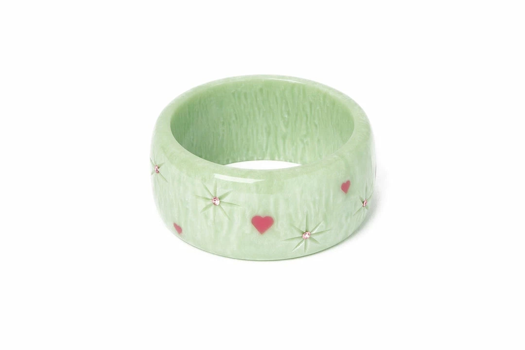 What a sweet colour combo! The Extra Wide Sweet Pea Starburst Bangle is a pastel green with cute pink hearts to add some contrast. The colour combo is super influenced by the 1950s but we love it for every and any decade!
