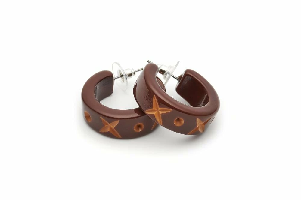 Not only are walnuts good for your health but the Walnut Carved Hoop Earrings is fab for your finishing off your vintage style outfit. Inspired by the mid-century carvings of the 1950s, the vintage design is reflected in a Duotone of mid brown with lighter brown carvings.