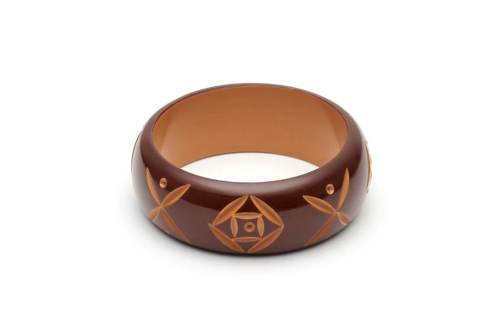 Not only are walnuts good for your health but the Wide Walnut Carved Bangle is fab for your stack. Inspired by the mid-century carvings of the 1950s, the vintage design is reflected in a Duotone of mid brown with lighter brown carvings.
