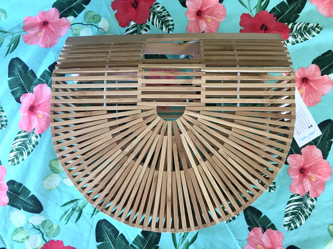 This handmade bamboo purse perfectly finishes off a classic tiki look.