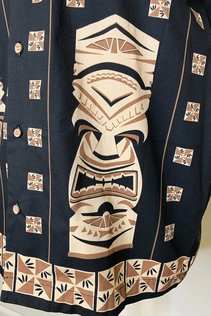 This shirt features my take on the God of War. Featuring a wooden tiki as well as a border print reminiscent of traditional island tapa cloth, this versatile skirt offers an authentic look with all the comfort and convenience of modern rayon fabric.