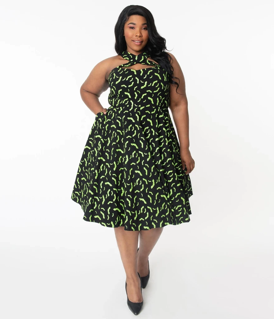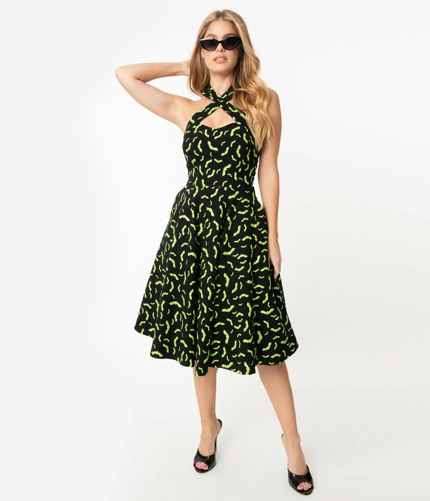 Unique Vintage Rita Green Bats Dress